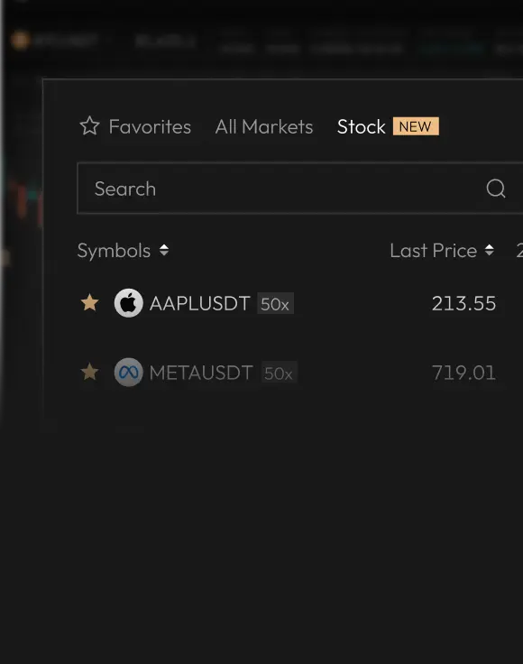 Trade stocks like AAPL and GOOG as perps — fully on-chain, settled in crypto with up to 50x leverage.